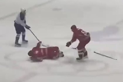 Президента Белоруссии Александра Лукашенко сбили с ног на ледовой арене во время хоккейного матча со